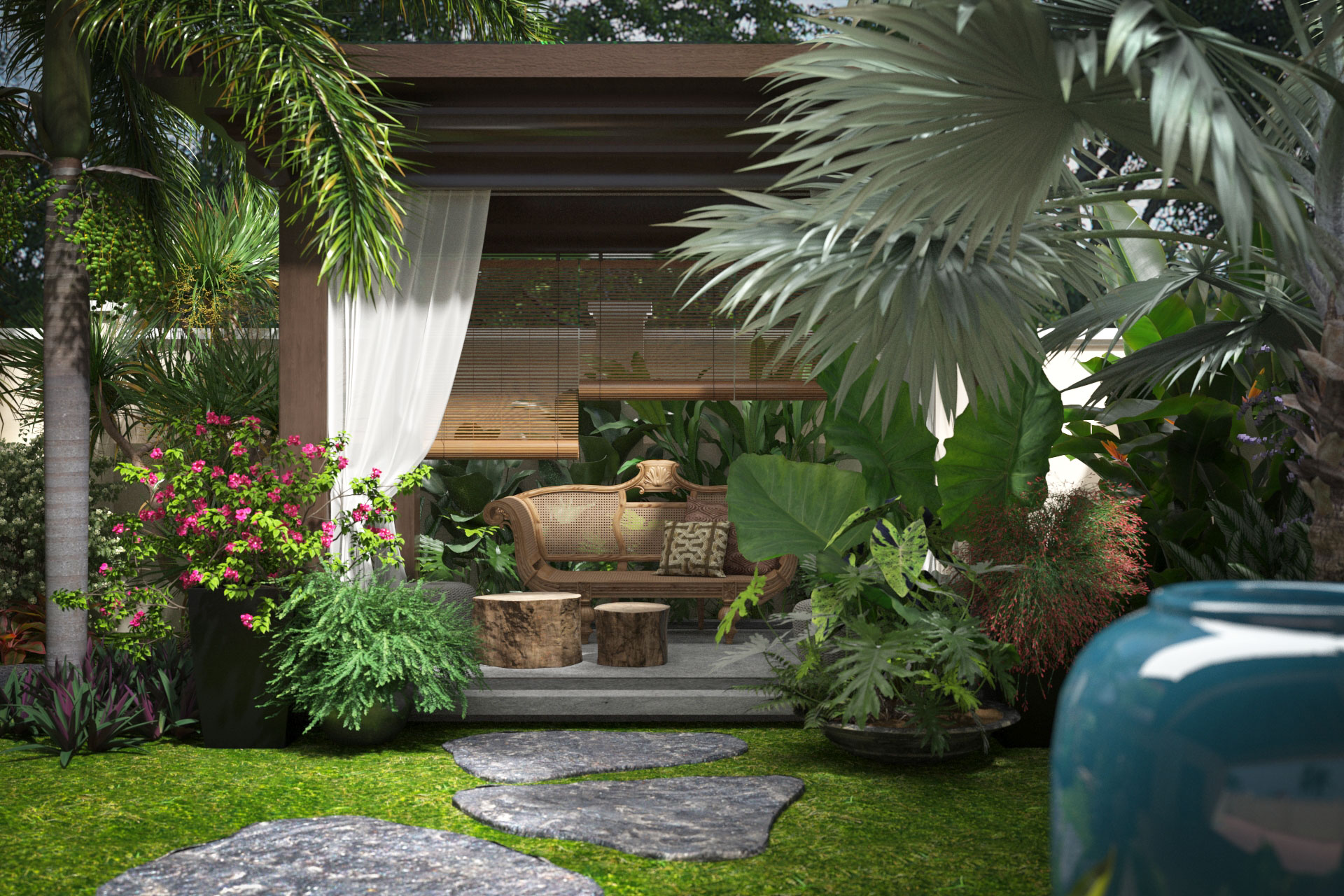 The team skillfully blended hardscapes and softscapes, creating a beautiful and cohesive garden design.